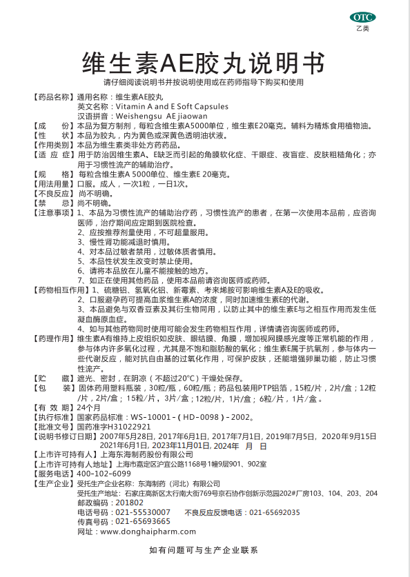 維生素AE膠丸電子藥品說明書